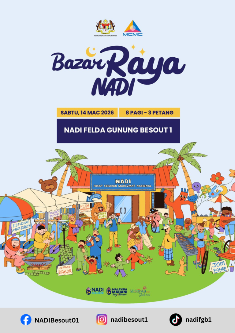 🌙 JOM MERIAHKAN BAZAR RAYA @ NADI! 🌙Sempena ketibaan Hari Raya, kami menjemput semua warga komuniti untuk memeriahkan Bazar Raya @ NADI Felda Gunung Besout 1 yang akan diadakan seperti berikut: 📅 Tarikh: Sabtu, 14 Mac 2026⏰ Masa: 8.00 pagi […]
